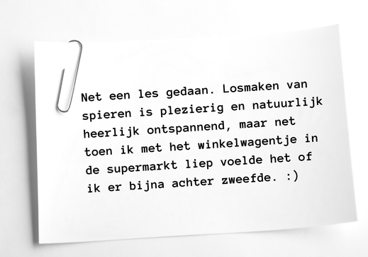 Door jouw verhaal kan een ander besluiten om ook die stap te nemen om weer vertrouwen te krijgen in haar lichaam, beter te ontspannen en weer te bewegen met gemak. Dat zou mooi zijn toch!
